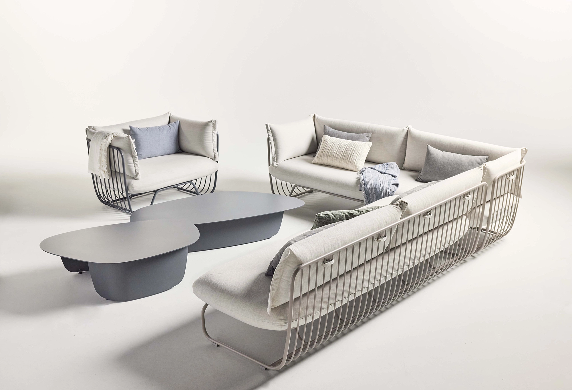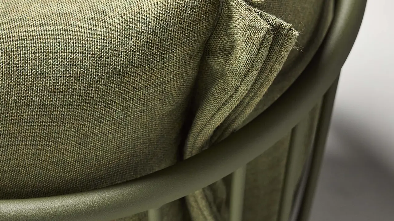 Designed to gracefully endure the elements, Monterey’s cushions combine the hardwearing nature of an outdoor site furnishing with a quality of upholstery detailing often only seen in premium indoor pieces. The line utilizes Summit Tradewind weather-, fade- and abrasion-resistant fabric, a 100% solution-dyed acrylic performance fabric celebrated for its durability and ability to excel in trying applications like high-use settings and coastal and marine environments. This material comes together in elegant French seams and concealed zippers, while a dart on the each of the cushions’ corners continues in its theme of smooth, beautifully rounded form.
